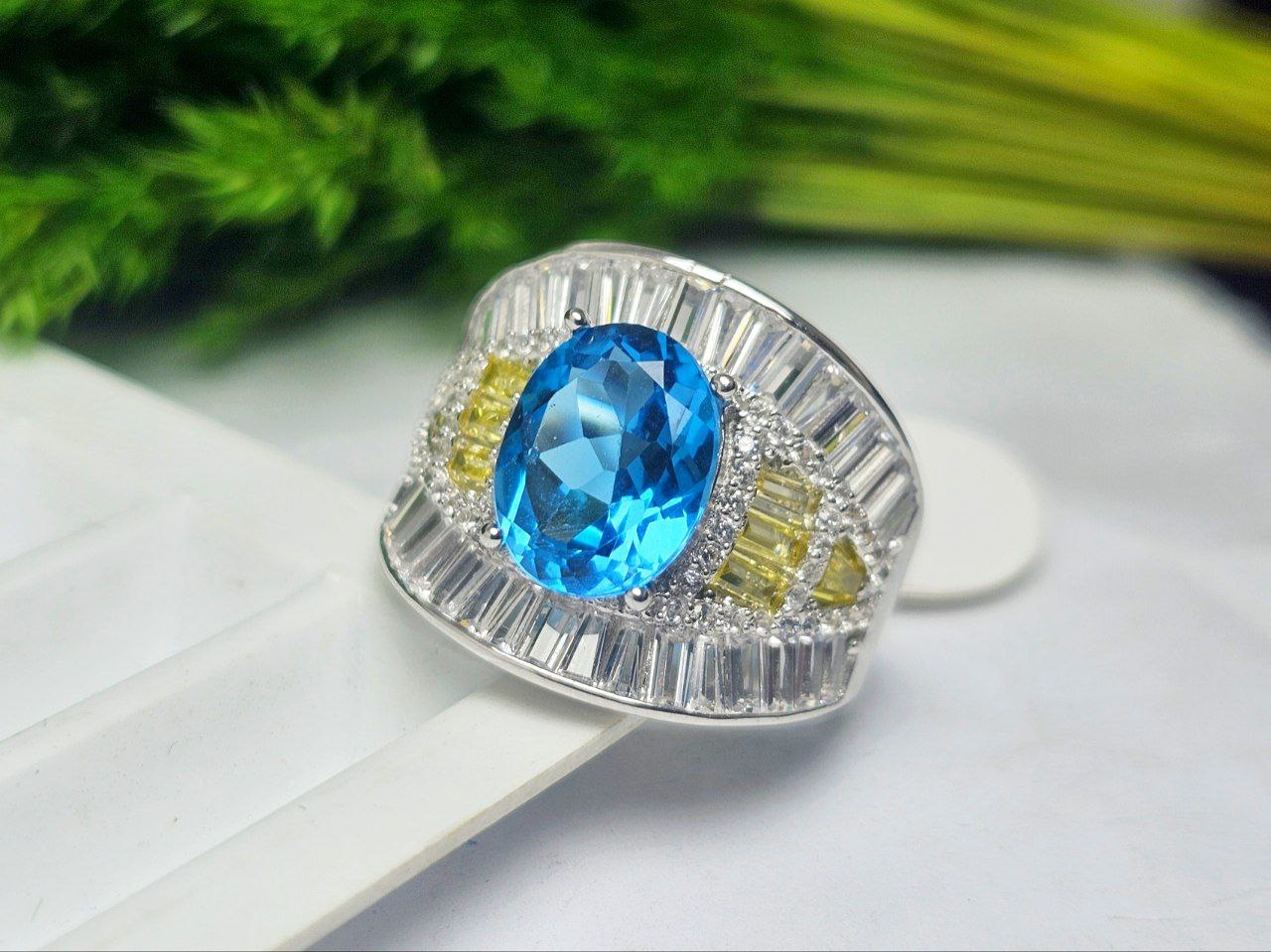 انگشتر نقره زنانه توپاز آبی اصلی سوئیسی