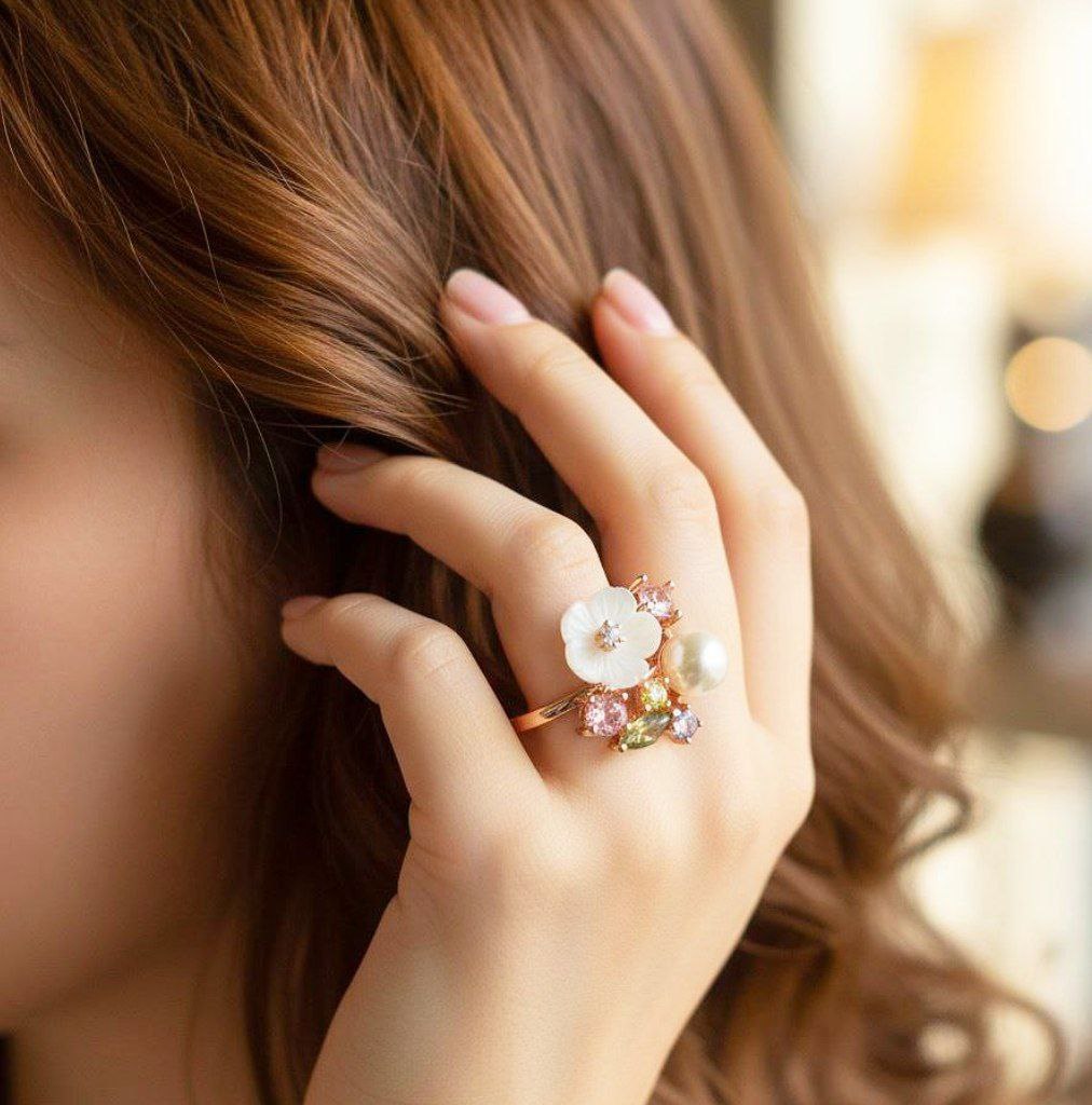 انگشتر نقره زنانه جواهری صدف و مروارید اصلی