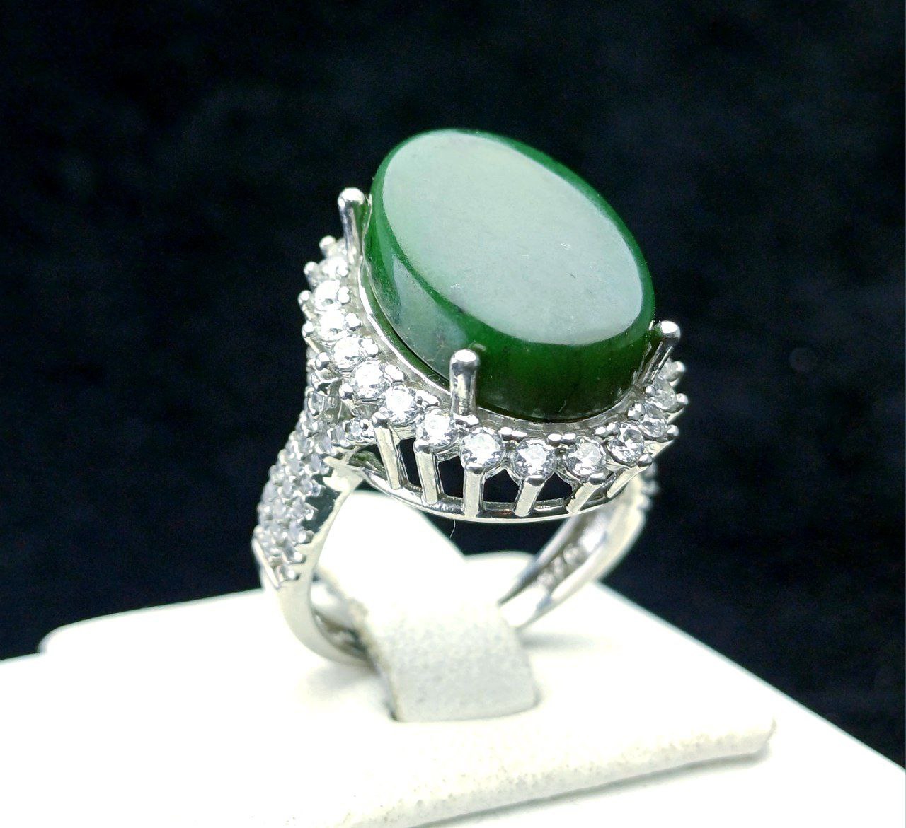 انگشتر نقره زنانه جواهری یشم اصلی