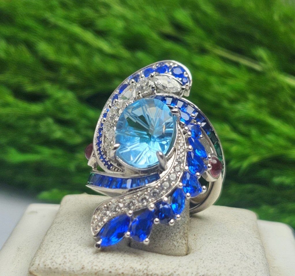 انگشتر نقره زنانه زیبای توپاز آبی اصلی
