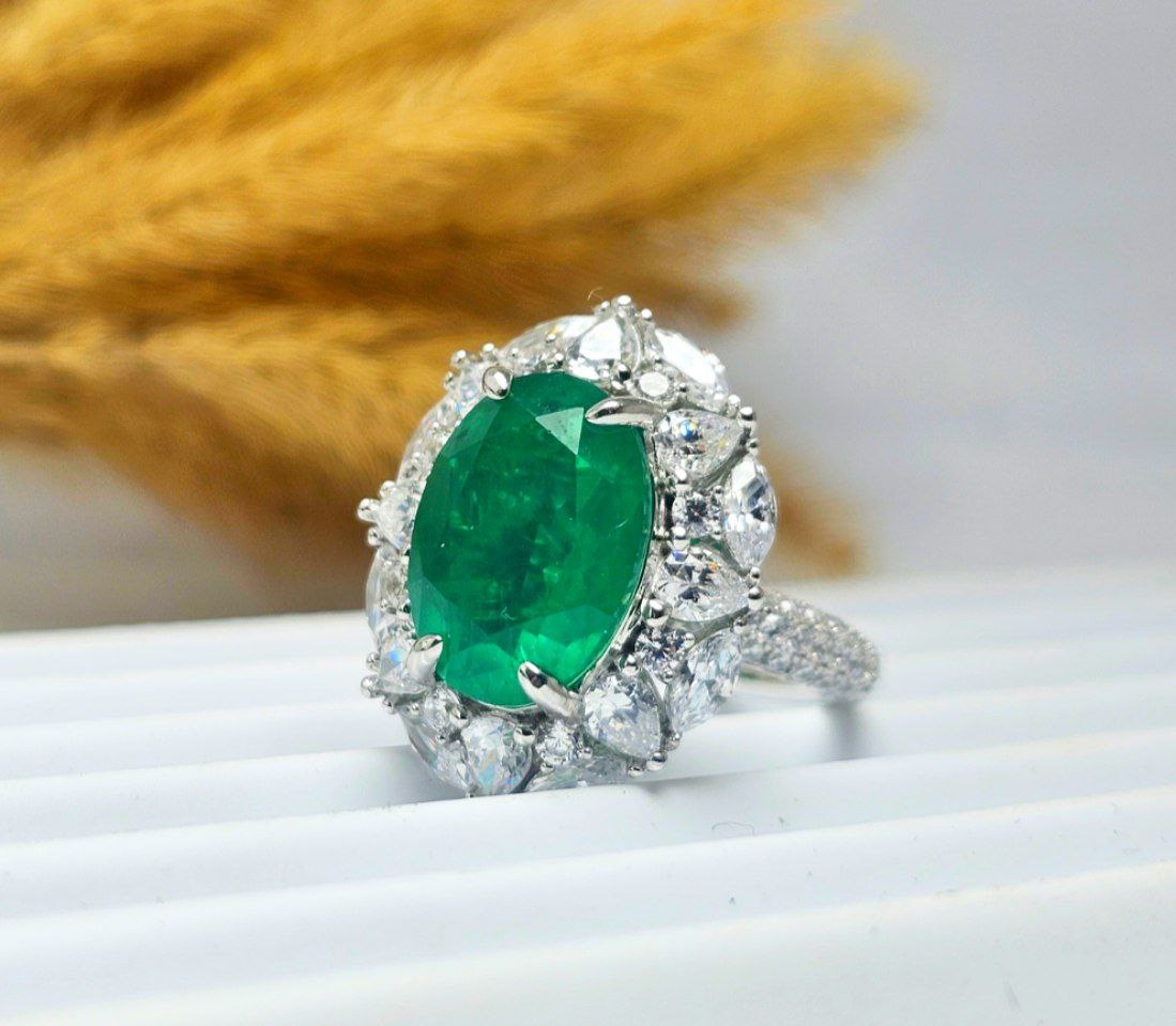 انگشتر نقره زنانه زیبای جواهری جیپسون سبز