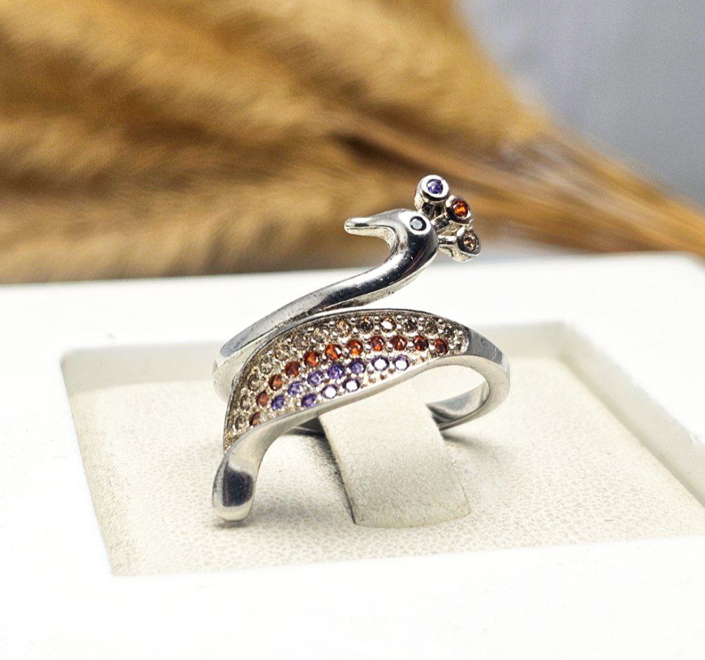 انگشتر نقره زنانه زیبای طاووس نگین رنگی میکرو