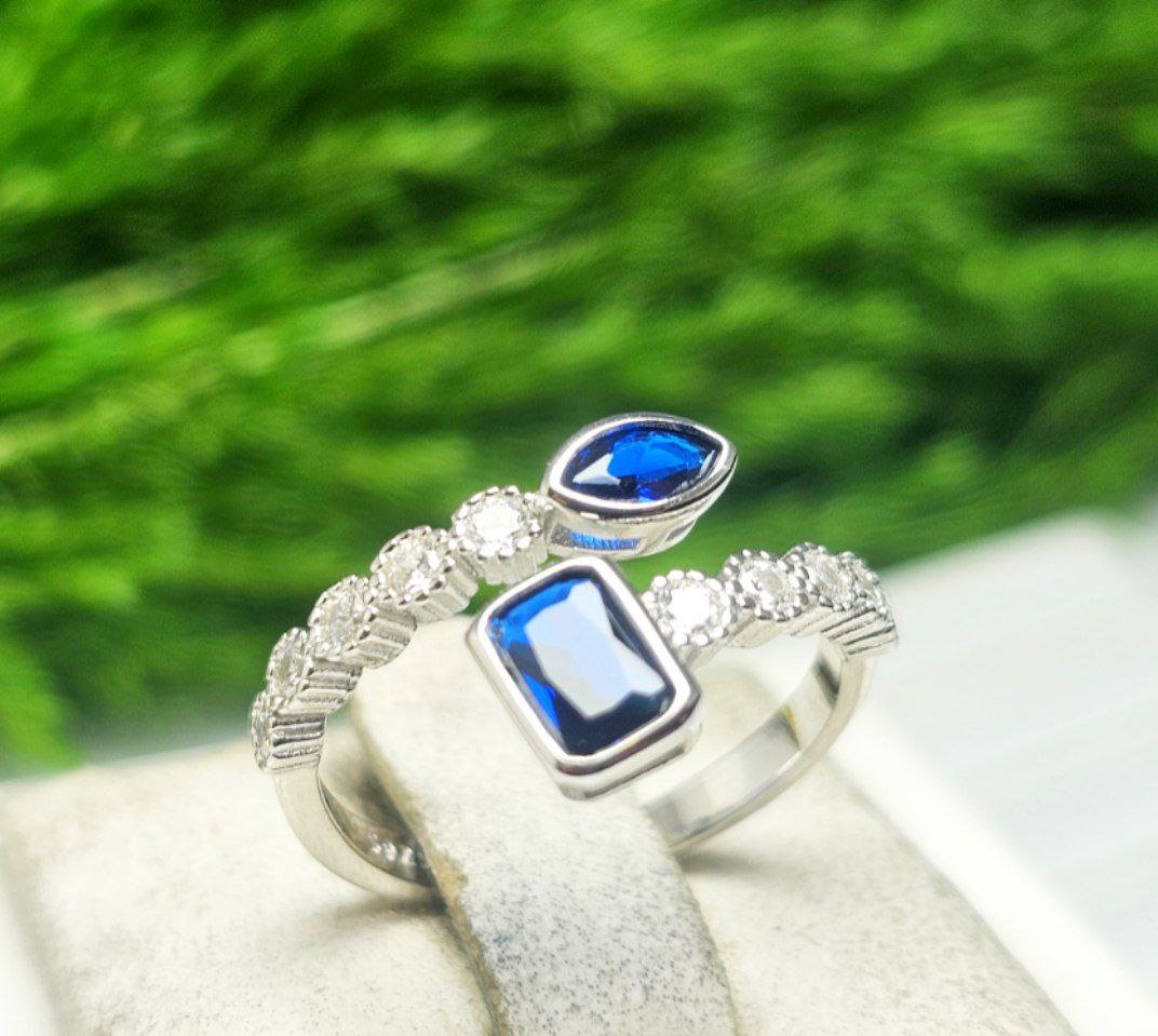 انگشتر نقره زنانه زیبای مینیمال و ظریف ۲ نگین