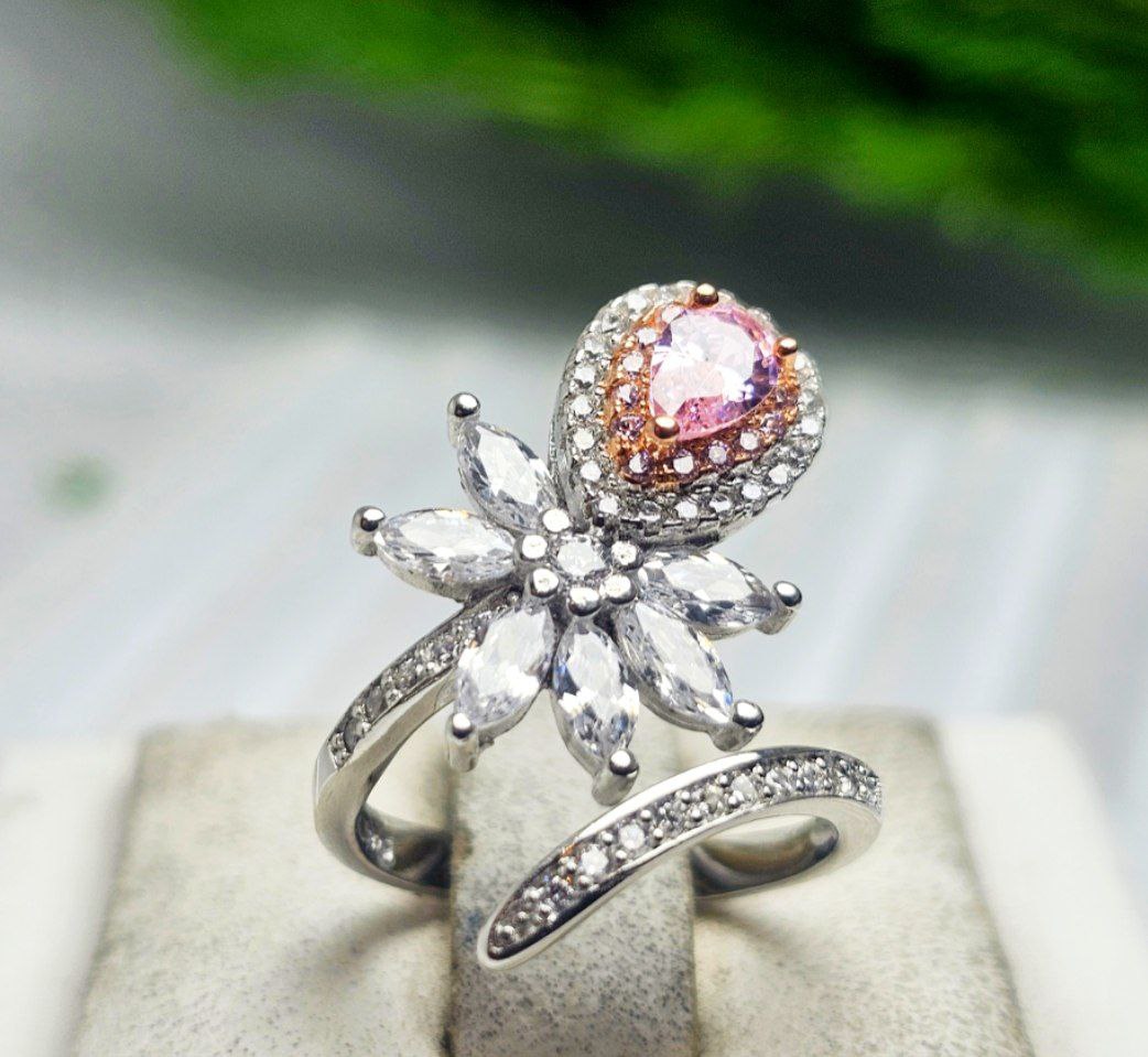 انگشتر نقره زنانه زیبا و ظریف نگین اشکی تراش فری سایز