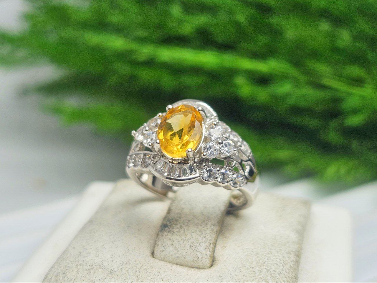 انگشتر نقره زنانه سیترین طلایی اصلی