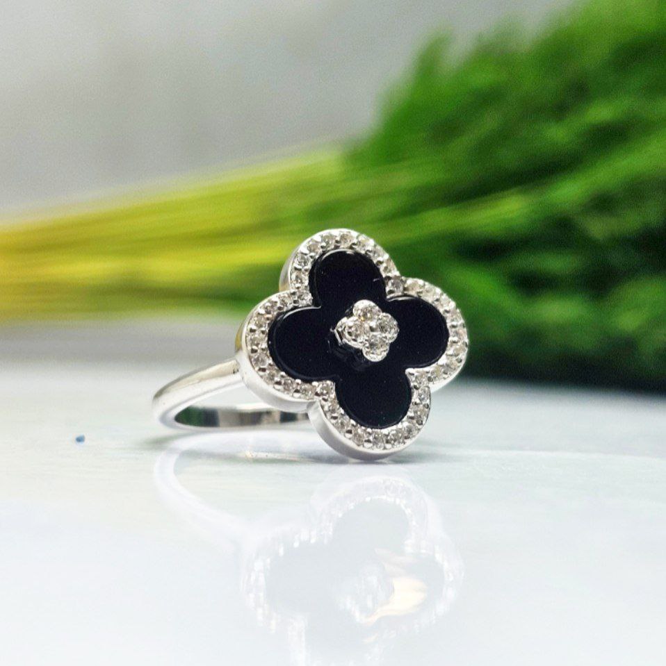 انگشتر نقره زنانه ونکلیف با نگین عقیق مشکی