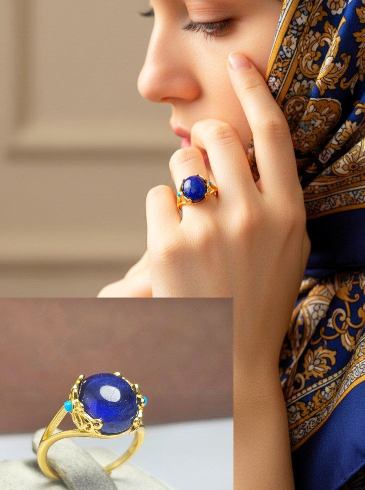انگشتر نقره زنانه یاقوت کبود اصلی دامله تراش