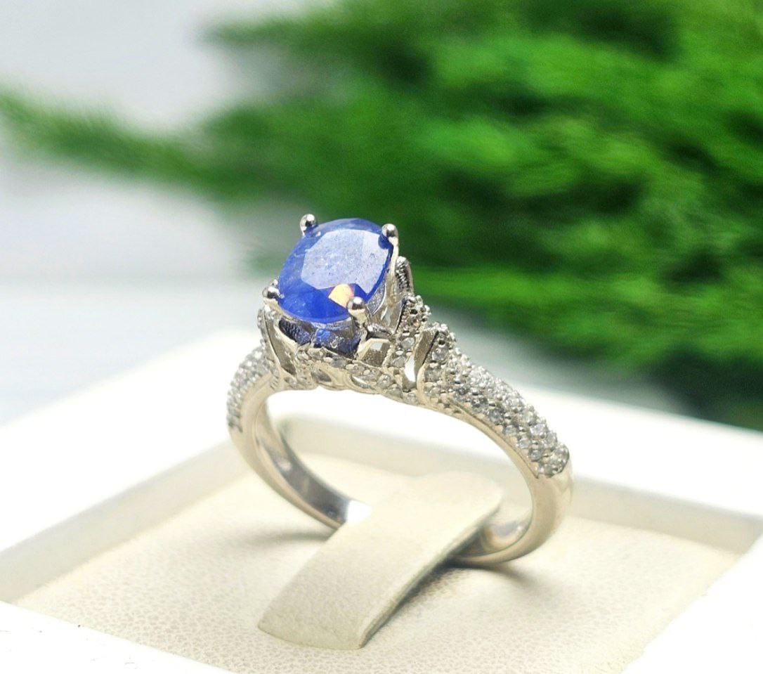 انگشتر نقره زنانه یاقوت کبود اصلی
