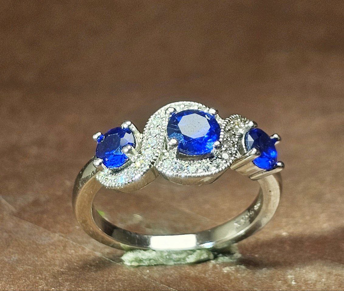 انگشتر نقره زنانه 3 نگین آبی سنتتیک
