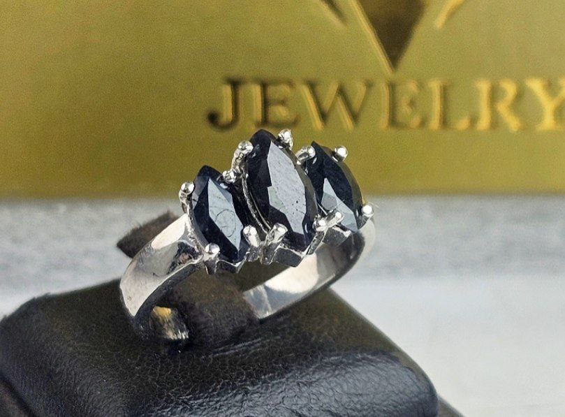 انگشتر نقره زنانه 3 نگین یاقوت کبود