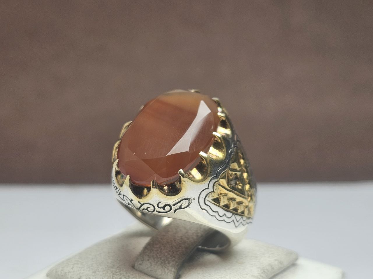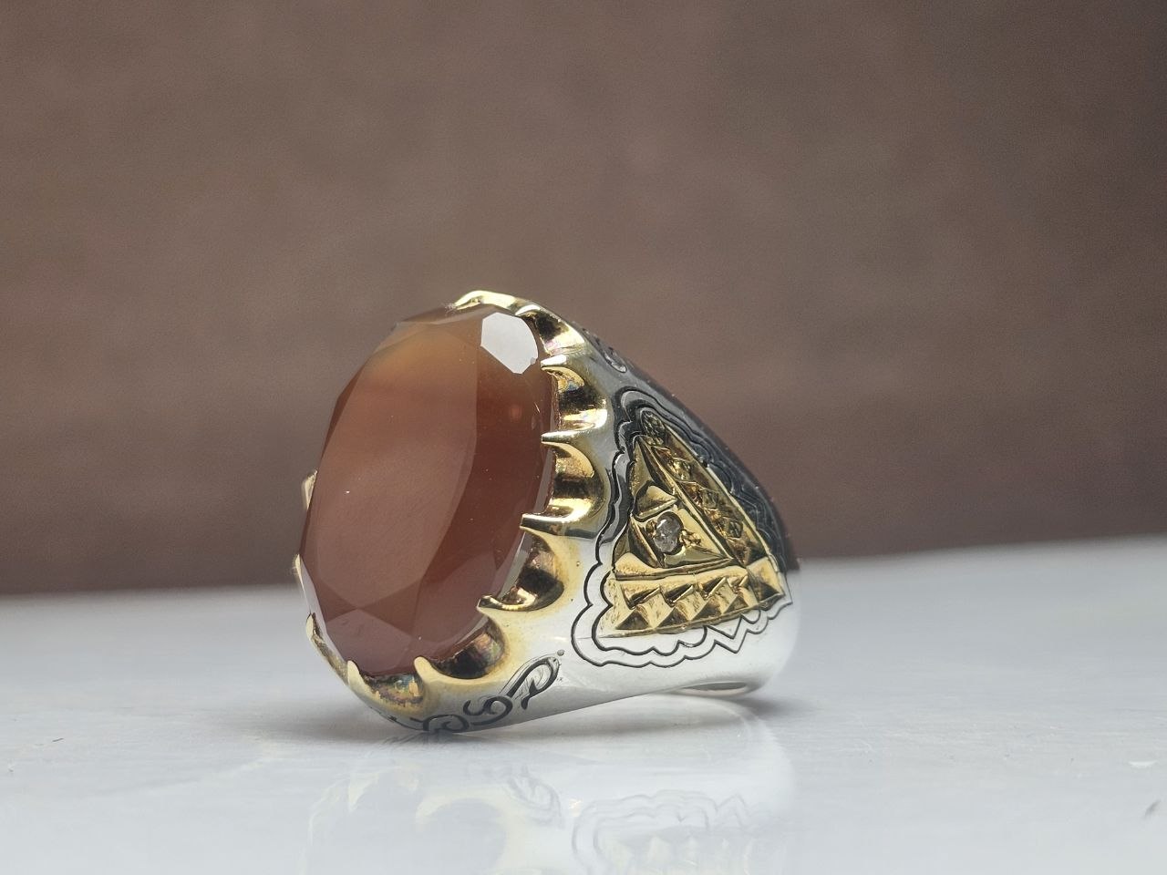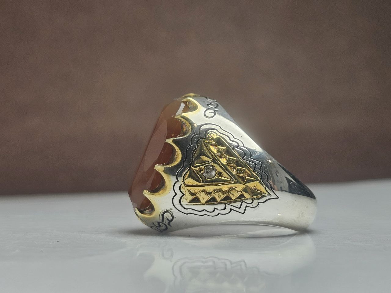 انگشتر نقره عقیق یمنی الماس تراش اصلی