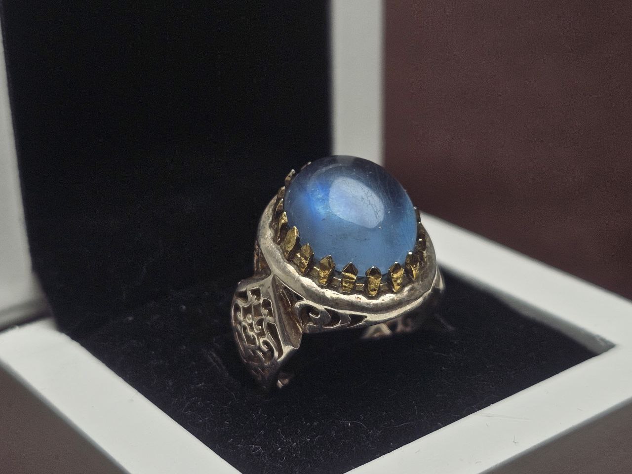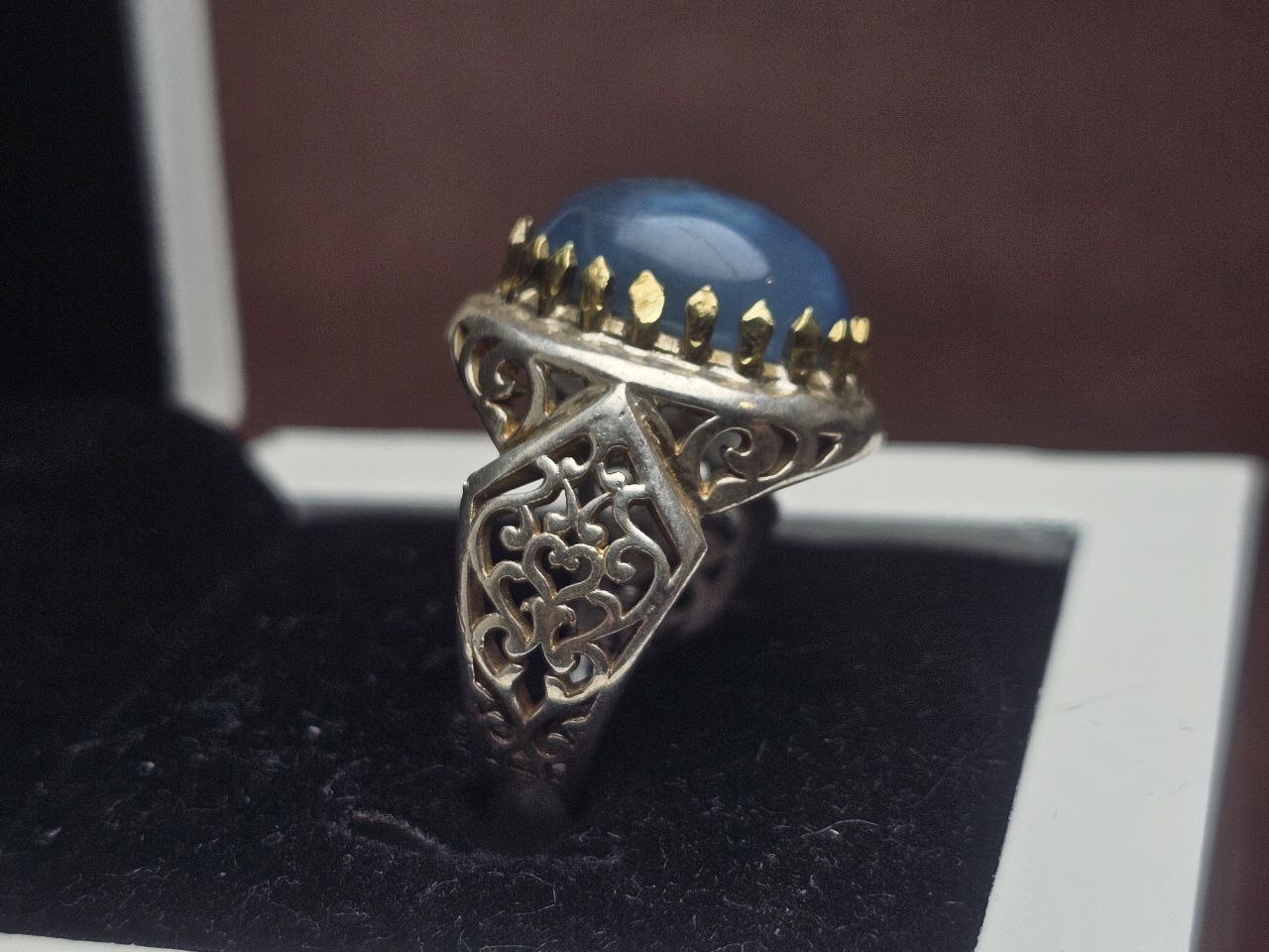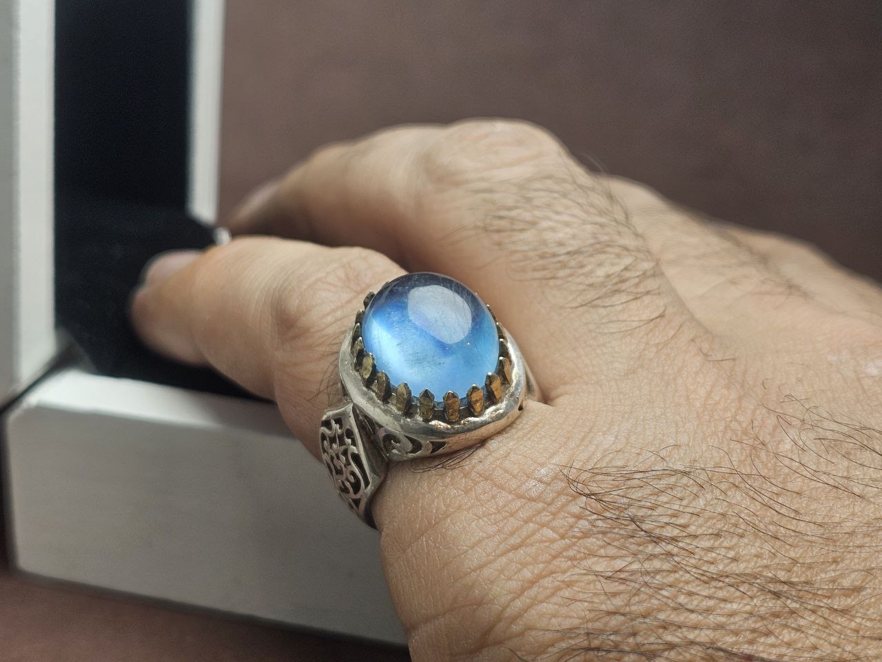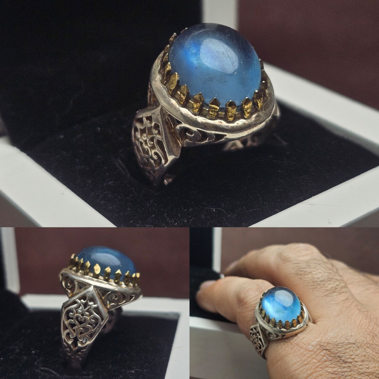 انگشتر نقره مردانه آکومارین آبی اصلی