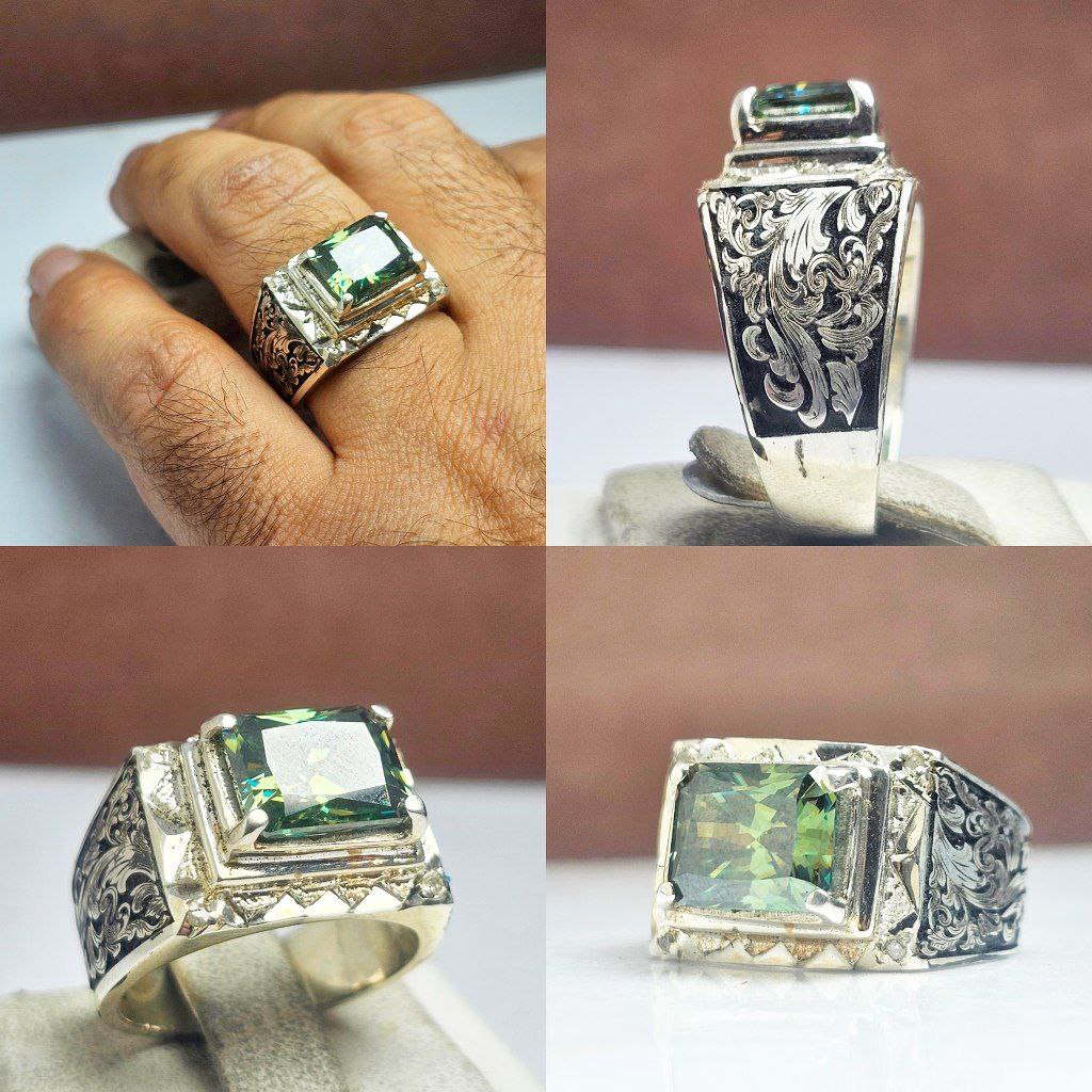 انگشتر نقره موزانایت چهارگوش اصلی