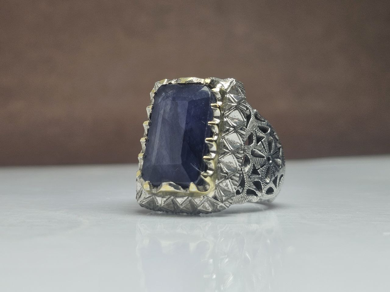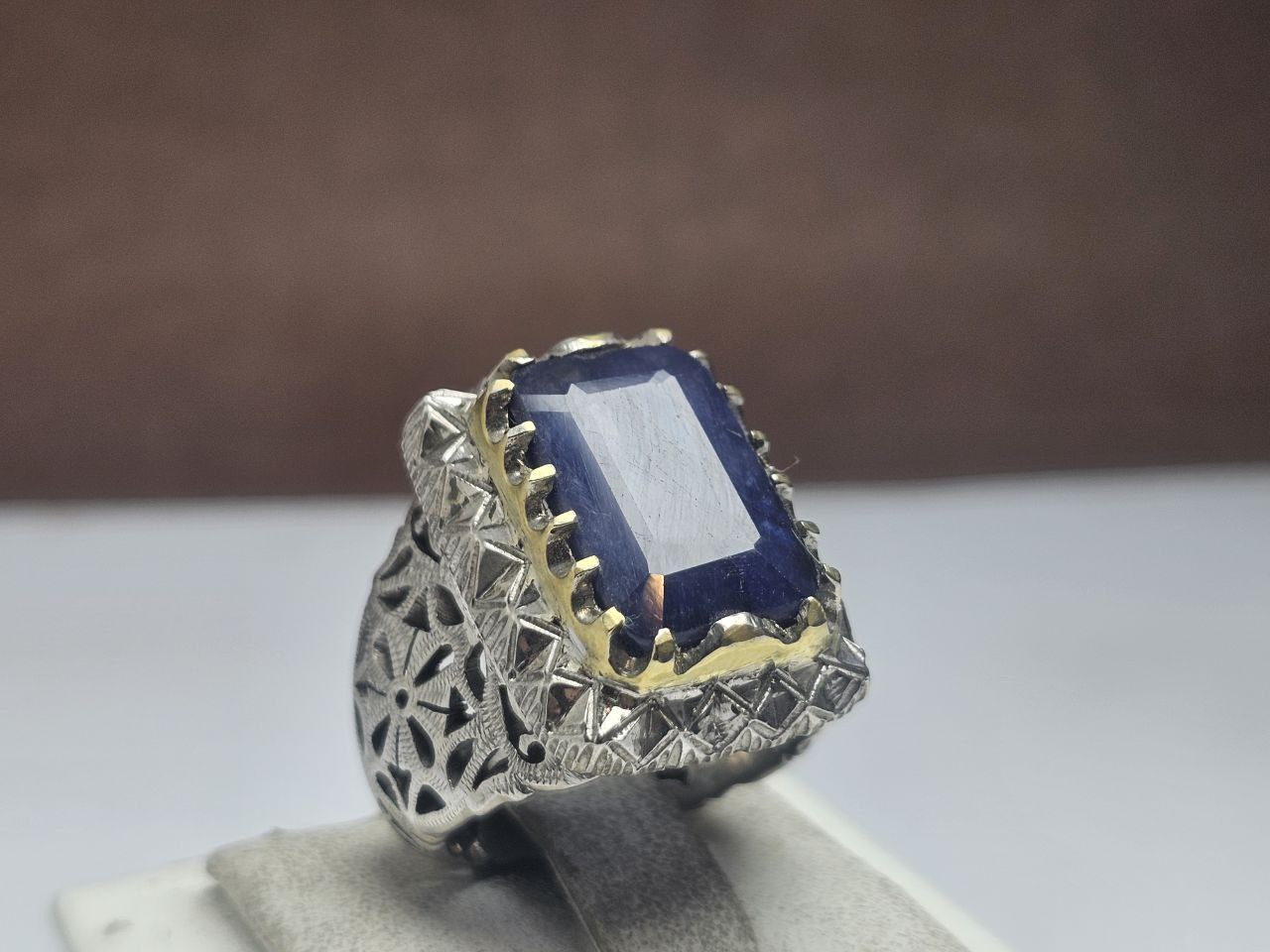 انگشتر نقره یاقوت کبود چهارگوش اصلی