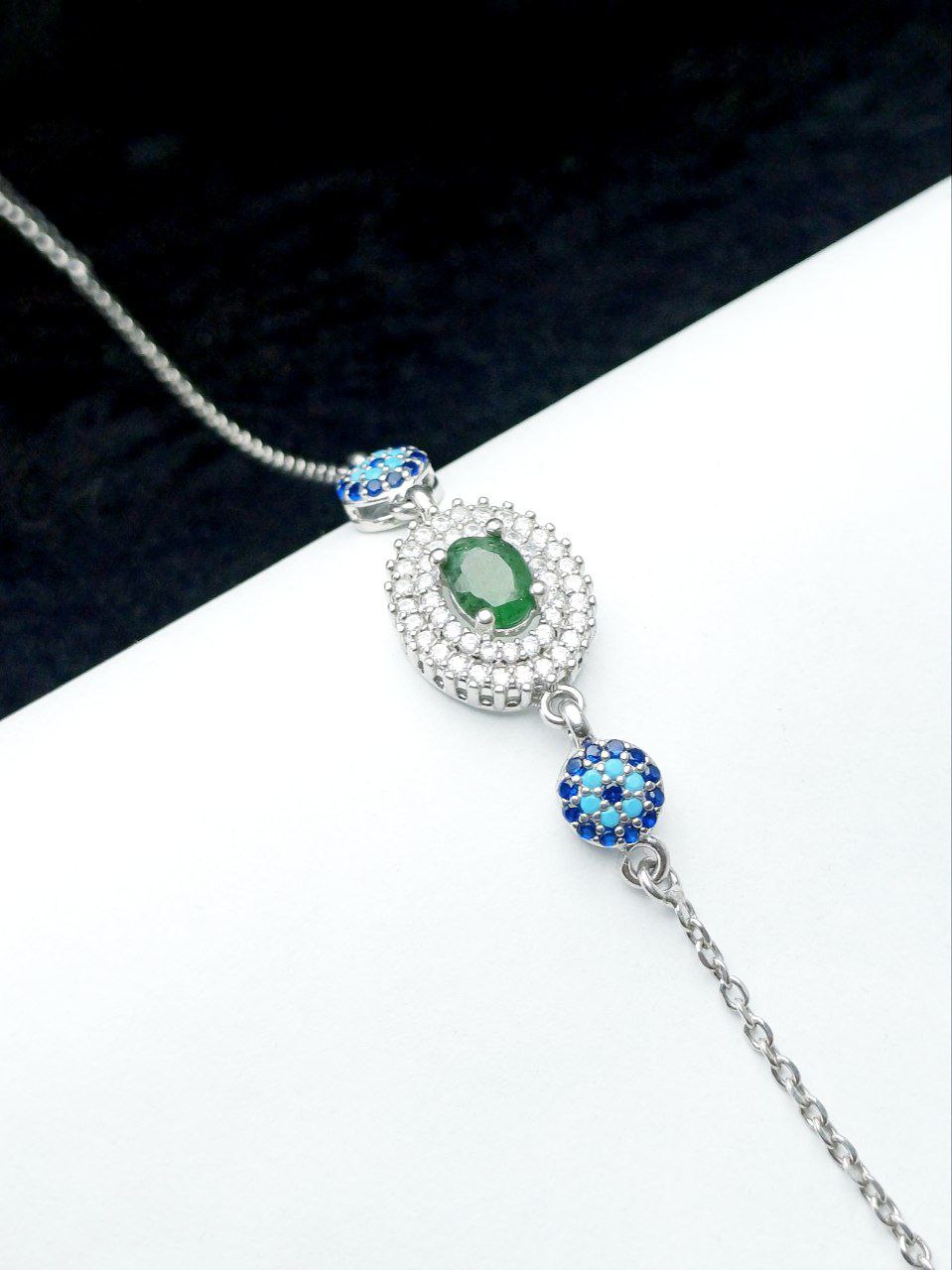 دستبند نقره جواهری زمرد زامبیا اصلی