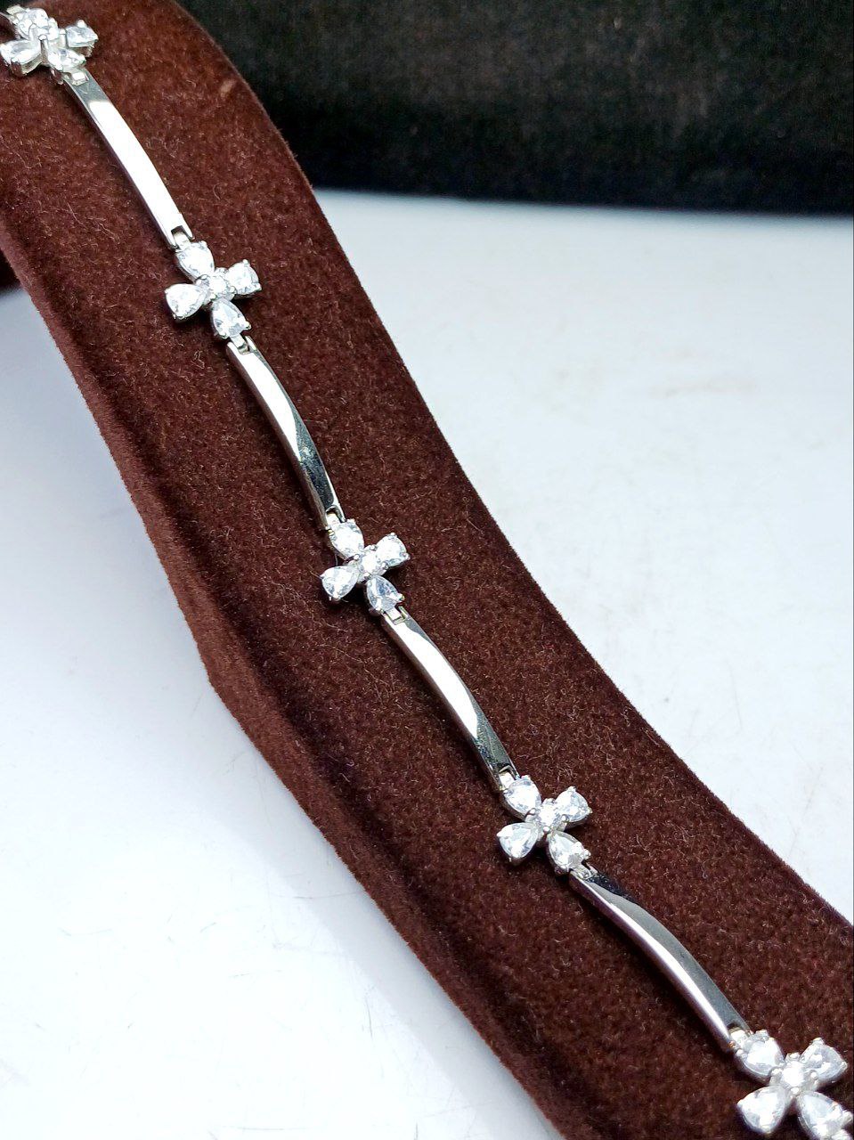 دستبند نقره جواهری نگین های سفید اشکی تراش طرح گل