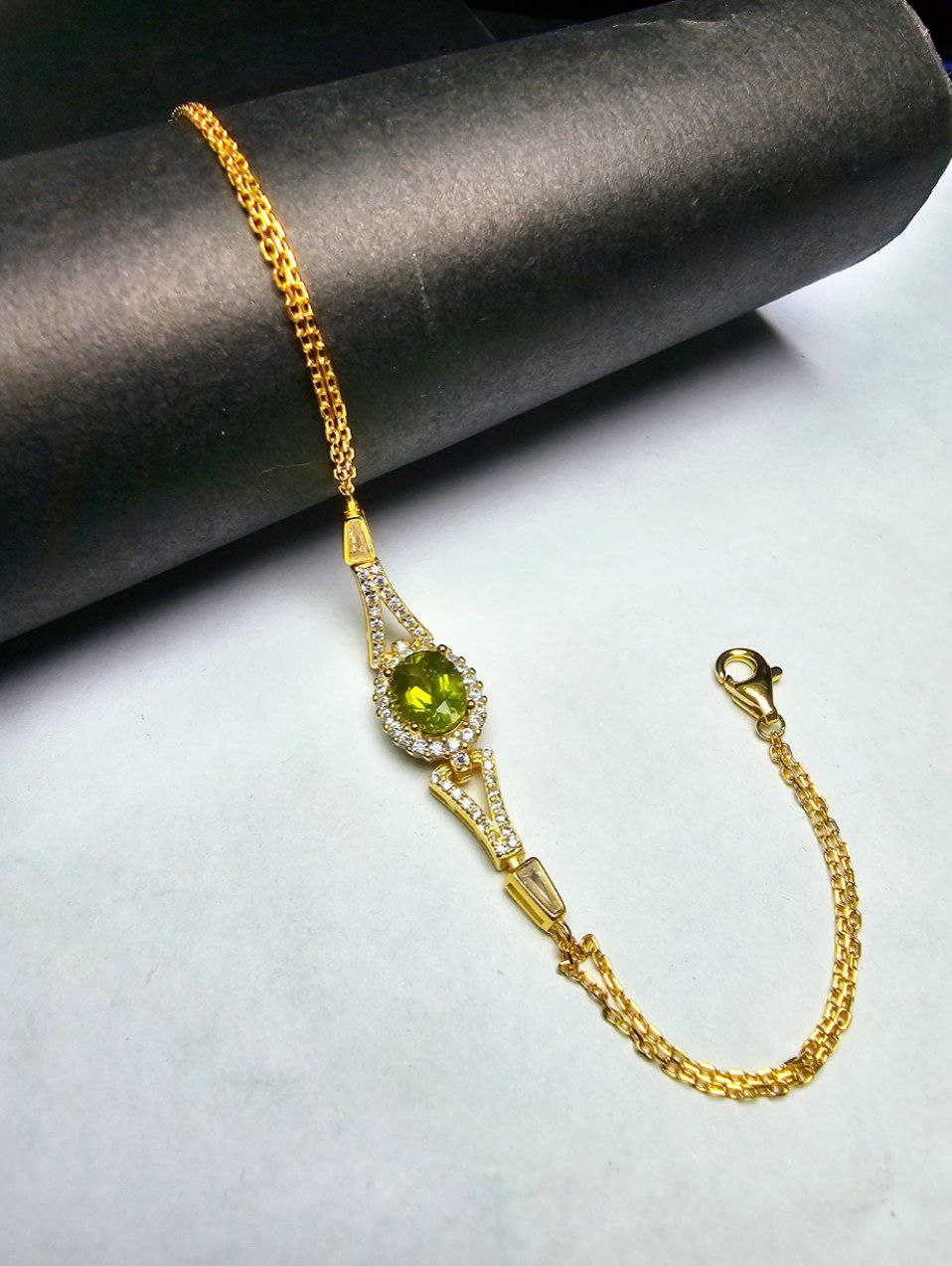 دستبند نقره زیبای طلایی با نگین زبرجد اصلی