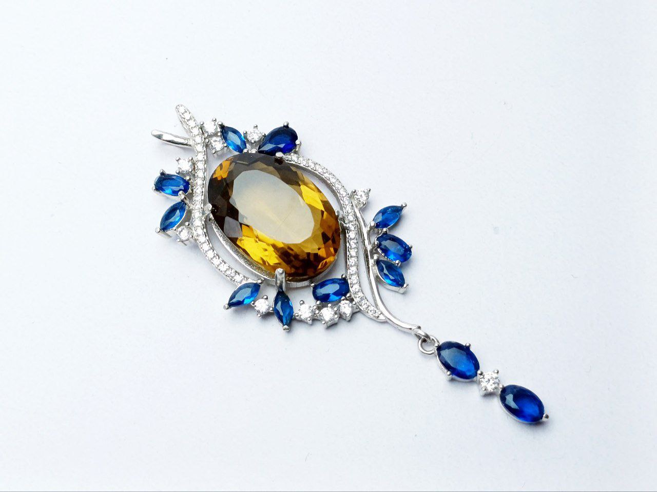 مدال توگردنی نقره جواهری سیترین اصلی
