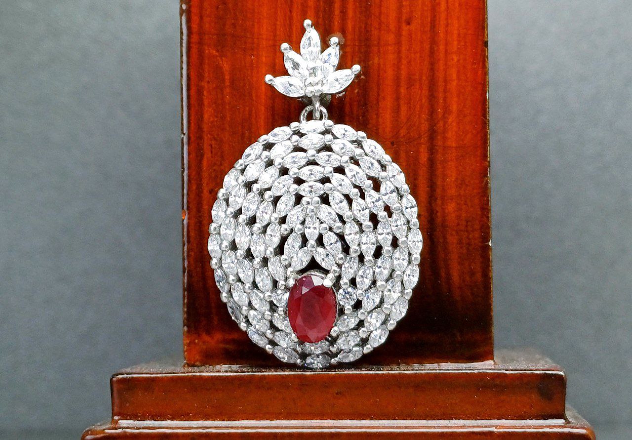 مدال نقره توگردنی جواهری یاقوت قرمز اصلی