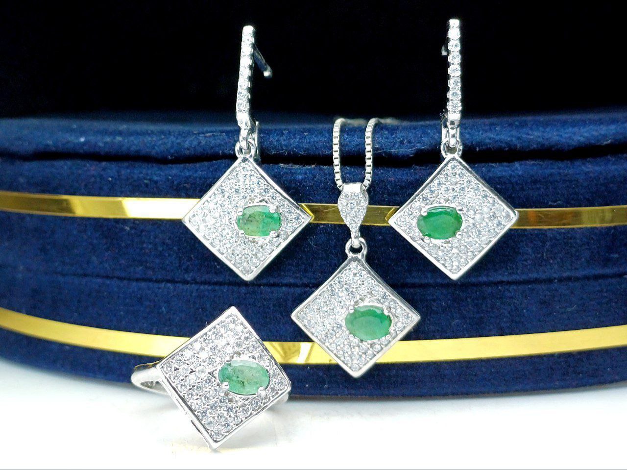 نیم ست نقره جواهری زمرد زامبیا اصلی