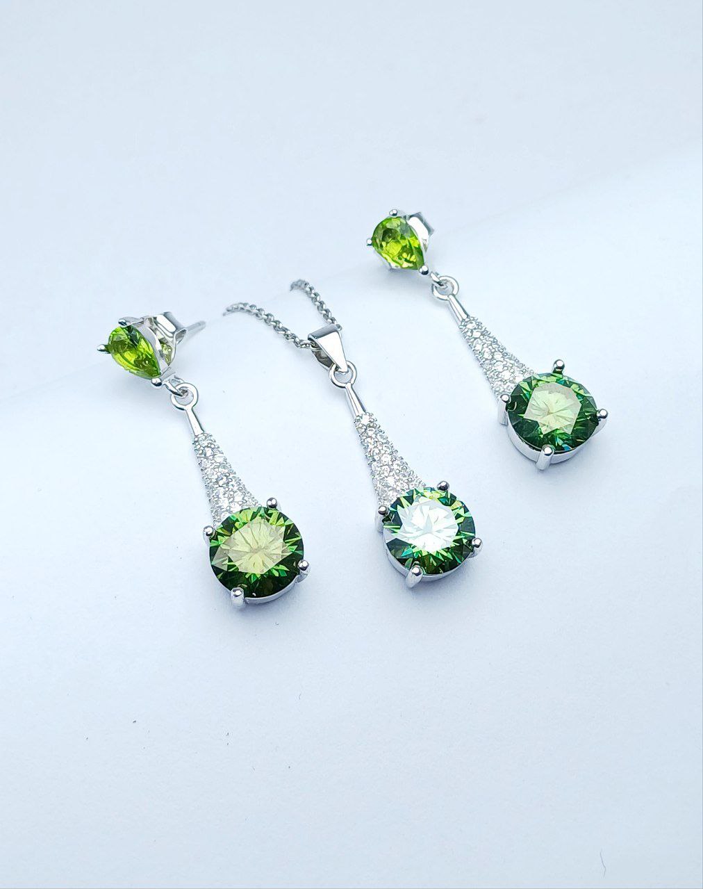 نیم ست نقره جواهری موزانایت اصلی (الماس روسی)