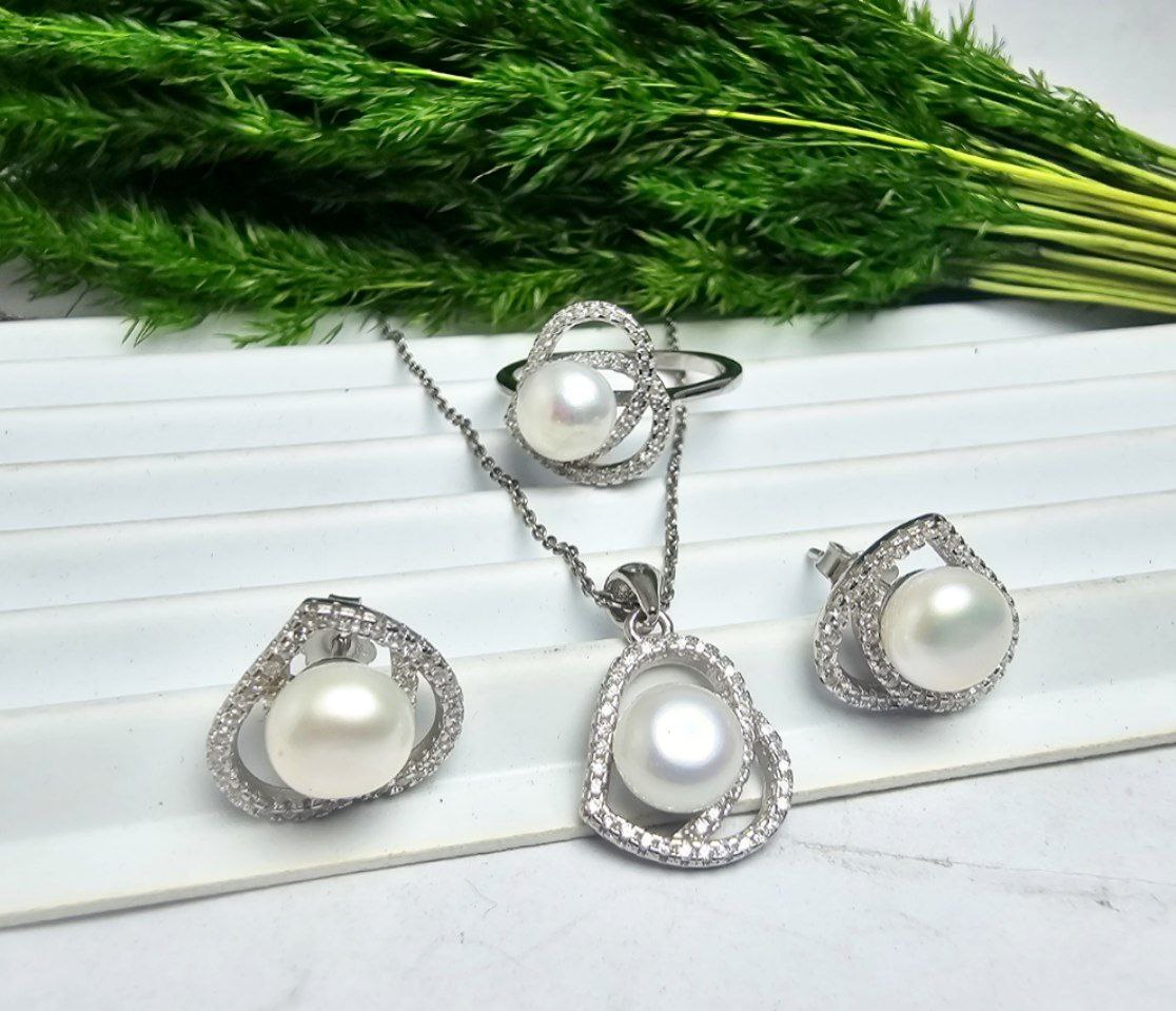نیم ست نقره زیبای مروارید پرورشی اصلی