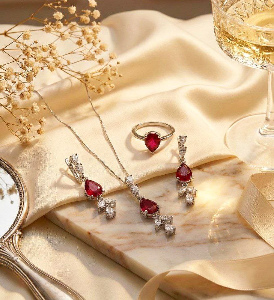 نیم ست نقره یاقوت قرمز آفریقایی اصلی